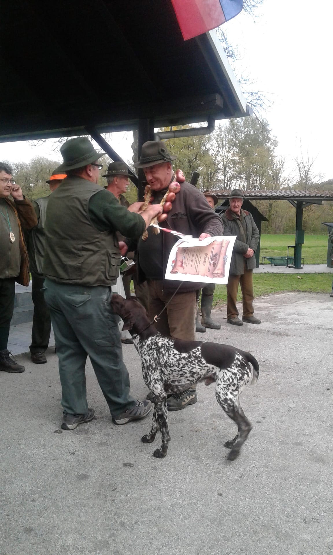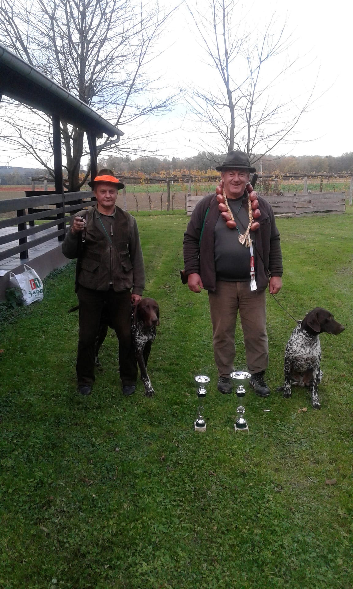 Poudarek na druženju lovcev, kinologov, vodnikov, udeležilo se je 19 vodnikov nemških ptičarjev, med njimi tudi predsednik LZS mag. Srečko Krope z 18 mesečno Ajko (z lovsko kinološkega zornega kota, ga je bilo prav prijetno opazovati v “vrsti” tekmovalcev in na koncu… je bil ta par uvrščen kar visoko…). Boj za zmago je bil napet, neizprosen, tudi sreča je bila zelo pomemben dejavnik… Kinološki sodniki so svoje delo opravili z odliko… Zmagovalec in prejemnik pokala Sv. Huberta je postal tandem Anton Jurgec in nemški kratko dlaki ptičar Boss “Erka” od Velečiča z osvojenimi 99 (od 100 možnih) točk. Drugo mesto – par Bojan Valenčič iz Metlike in Weimaranka Freya izpod Kuma. Tretje uvrščeni par Franc Horvat z nemškim kratko dlakim ptičarjem Arcom od Martinca je bil prav tako favorit za zmago, kajti v tekmovanju sta edina “pobrala” dva fazana, kot tandem Jurgec – Boss Erka od Velečiča, vendar, ker v “finale” z vsake skupine napreduje po en par, je Franci imel to smolo, da je bil v isti skupini z eno točko manj od Toneta… Pokali in nagrade so bile podeljene tudi najboljšim trem ekipam.